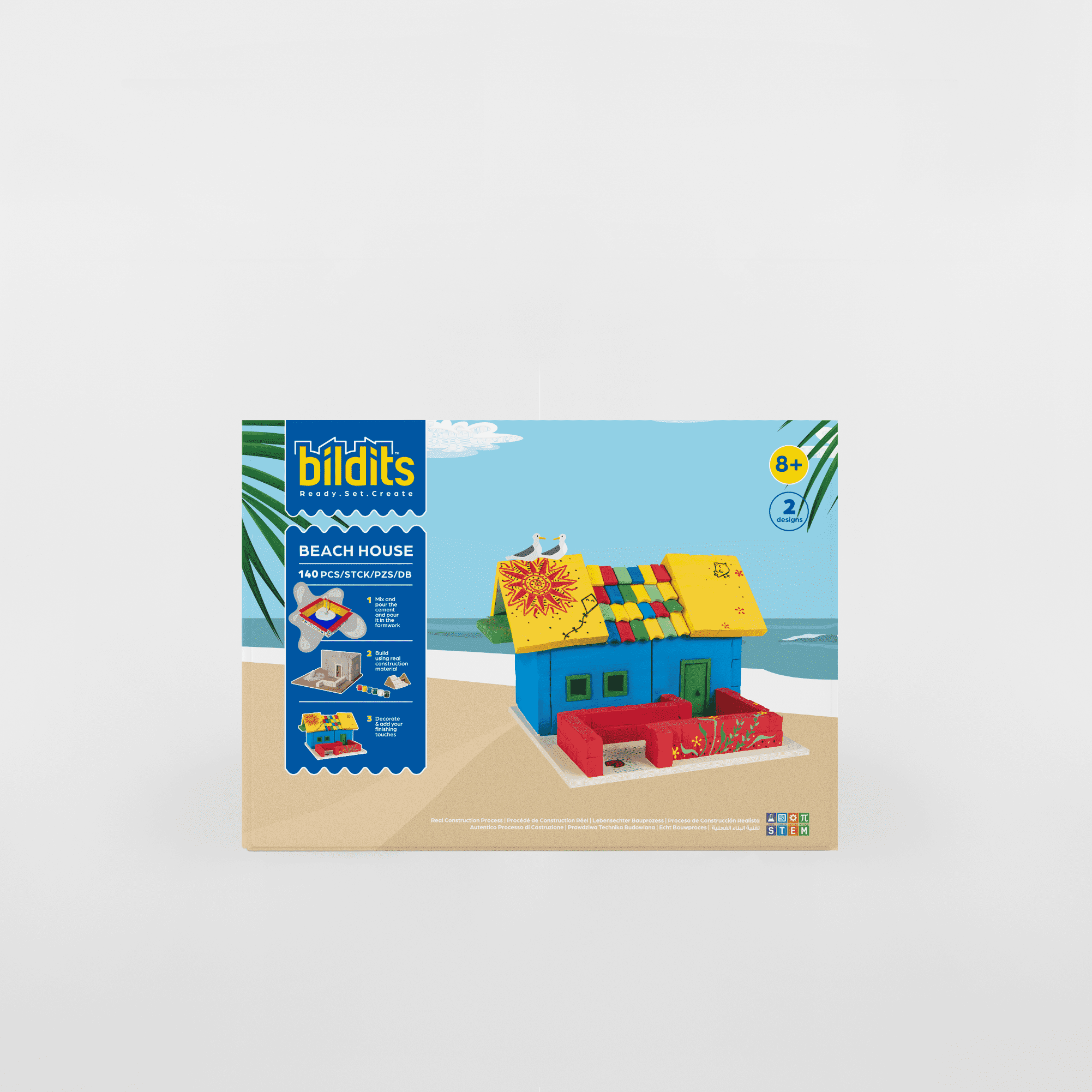 Beach House is part of the Bildits Pro Series. With these kits, young creators can start thinking and constructing more efficiently using precast walls designed to help level up their skills. Gain a unique understanding of modern construction methods by learning about precast walls that include doors and windows using our specially designed molds. Learning how to install them equips creators with the skills to build larger, more complex structures, while stimulating a range of cognitive and motor skills in the process.