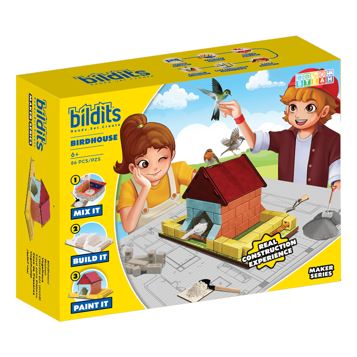 Create a cozy home for birds with the Birdhouse kit! Build a charming birdhouse using real bricks and materials, then personalize it with paint and decorations. Perfect for young builders or adults who love animals and nature!