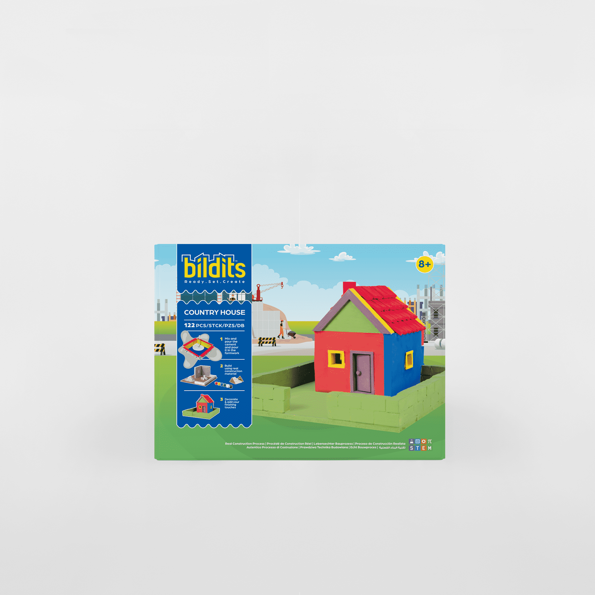 Country House is part of the Bildits Pro Series. With these kits, young creators can start thinking and constructing more efficiently using precast walls designed to help level up their skills. Gain a unique understanding of modern construction methods by learning about precast walls that include doors and windows using our specially designed molds. Learning how to install them equips creators with the skills to build larger, more complex structures, while stimulating a range of cognitive and motor skills in the process.