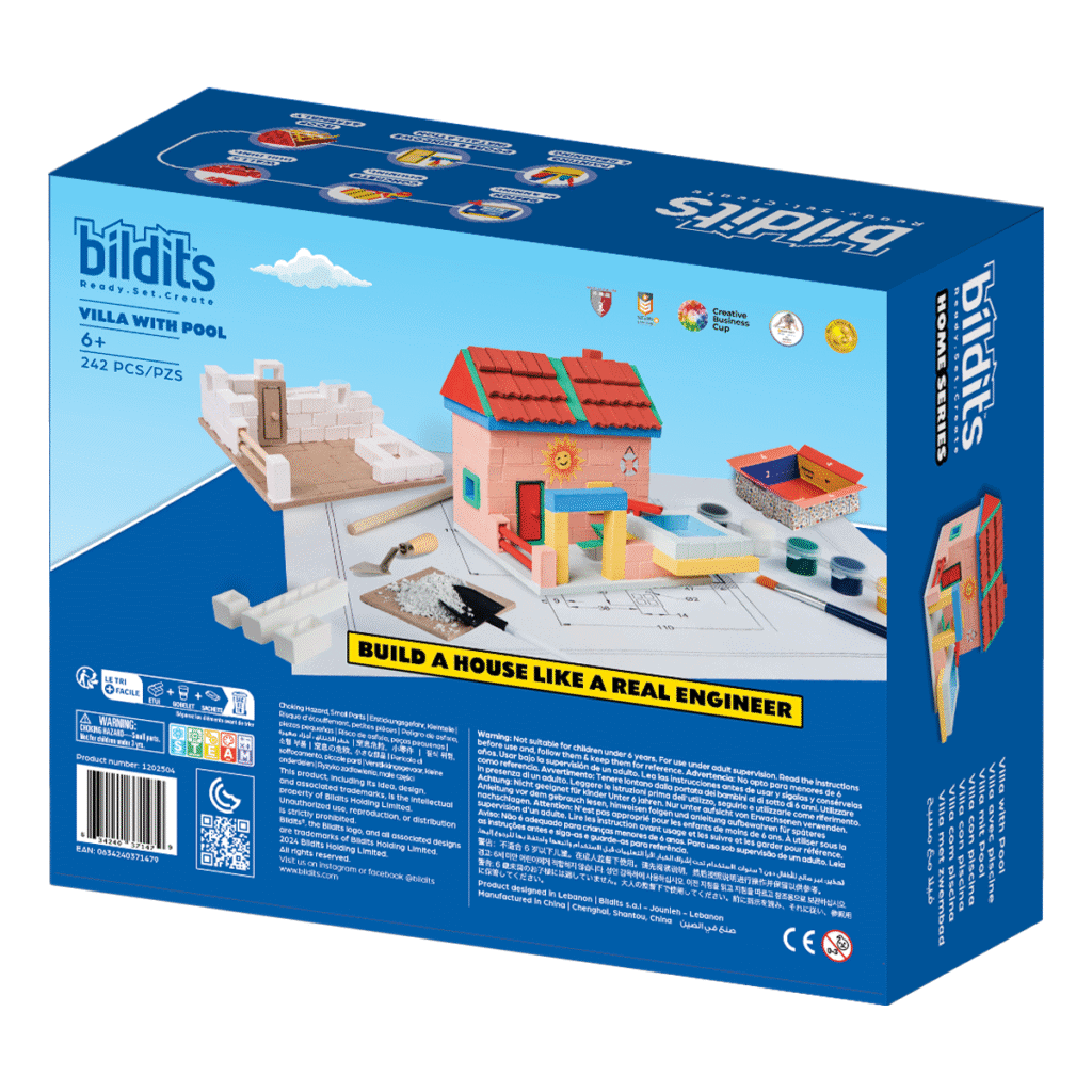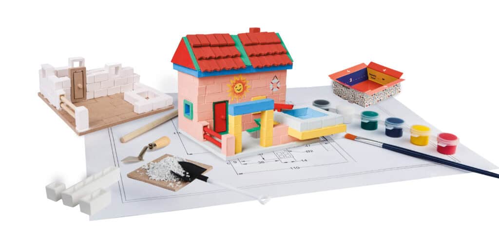 Create your dream villa by the pool with the Villa with Pool kit! This set lets kids use real building materials to construct a beautiful home with a pool. Build the structure, lay the bricks, and add finishing touches, all while learning about architecture and construction.